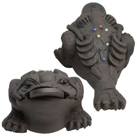 Se cree que los sapos dorados ayudan a ahuyentar lo malo y atraer riqueza. Girar la moneda en la boca del sapo es un ritual para atraer más dinero o “hacer dinero”.